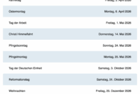 Kreative Ideen zu Standard Holiday Calendar For 2026 With Germany Holidays