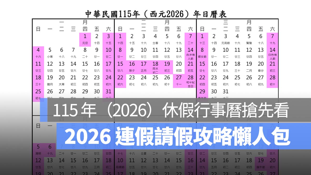 2026 年行事曆搶先看:連假請假休假、補班行事曆下載懶人包(115 年) – 蘋果仁 – 果仁 iPhone/iOS/好物推薦科技媒體