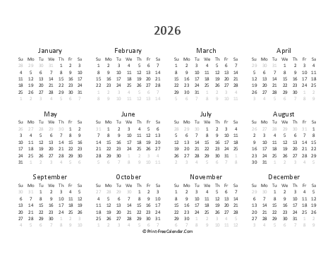 Download One Page Calendar 2026 With Usa Holidays Sunday Start (PDF – Idee, Foto & Vorlage
