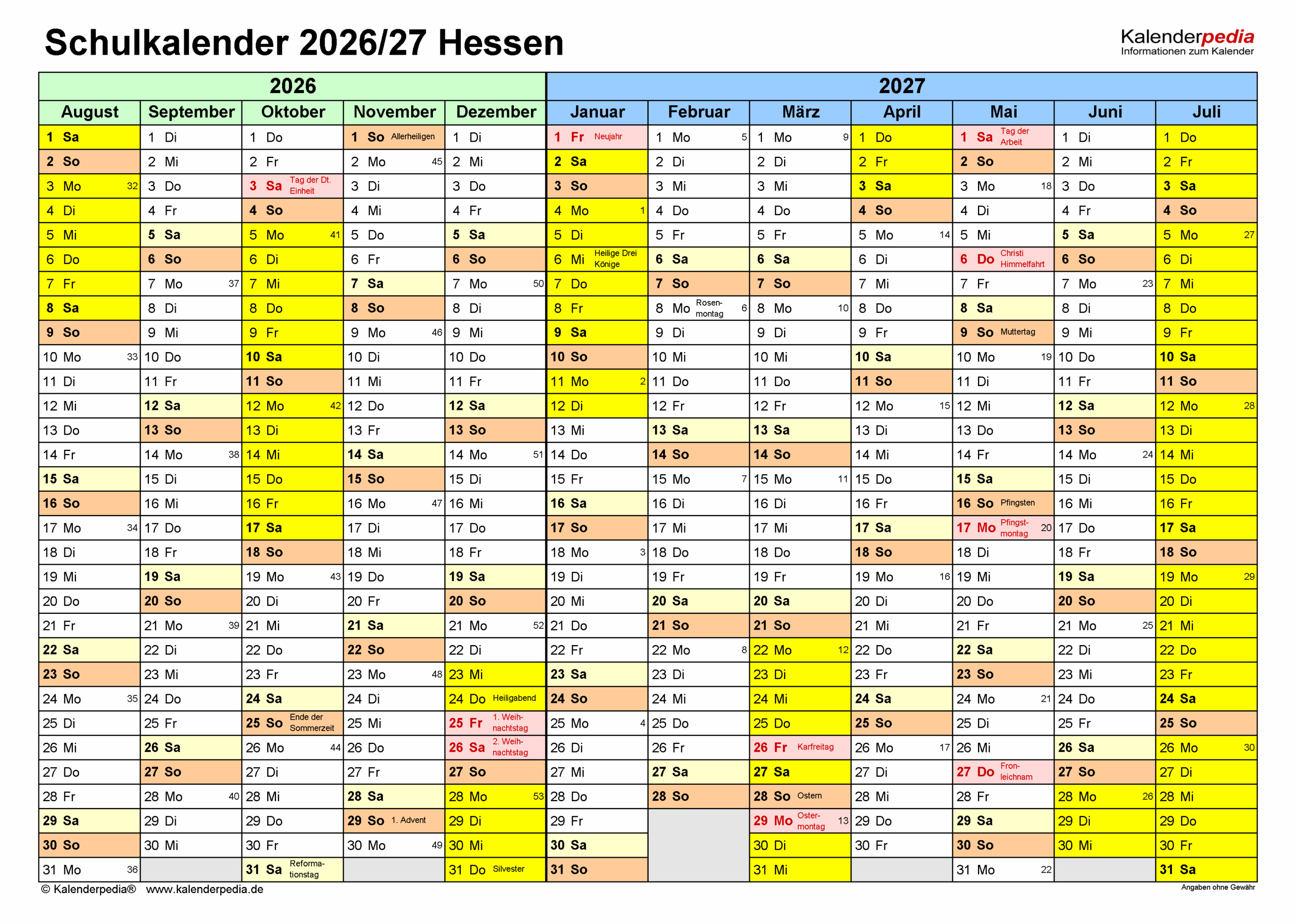 Das Motiv rund um Schulkalender 2026/2027 Hessen Für Word – Idee, Foto & Vorlage www.kalenderpedia.de