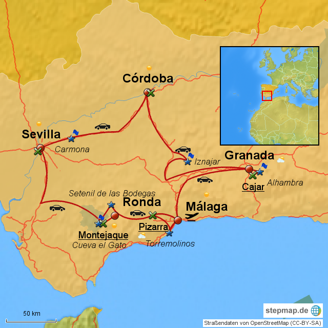 StepMap – Rundreise Andalusien – Landkarte Für Spanien – Bild & Inspiration