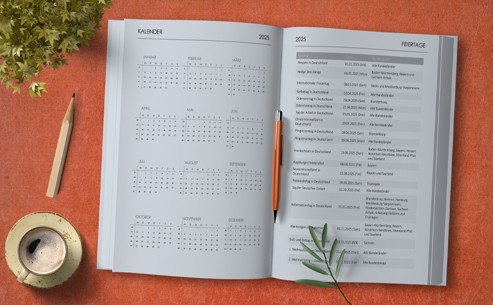 Buchkalender 2024/2025, die du als Idee für Design, Präsentation oder Recherche nutzen kannst.