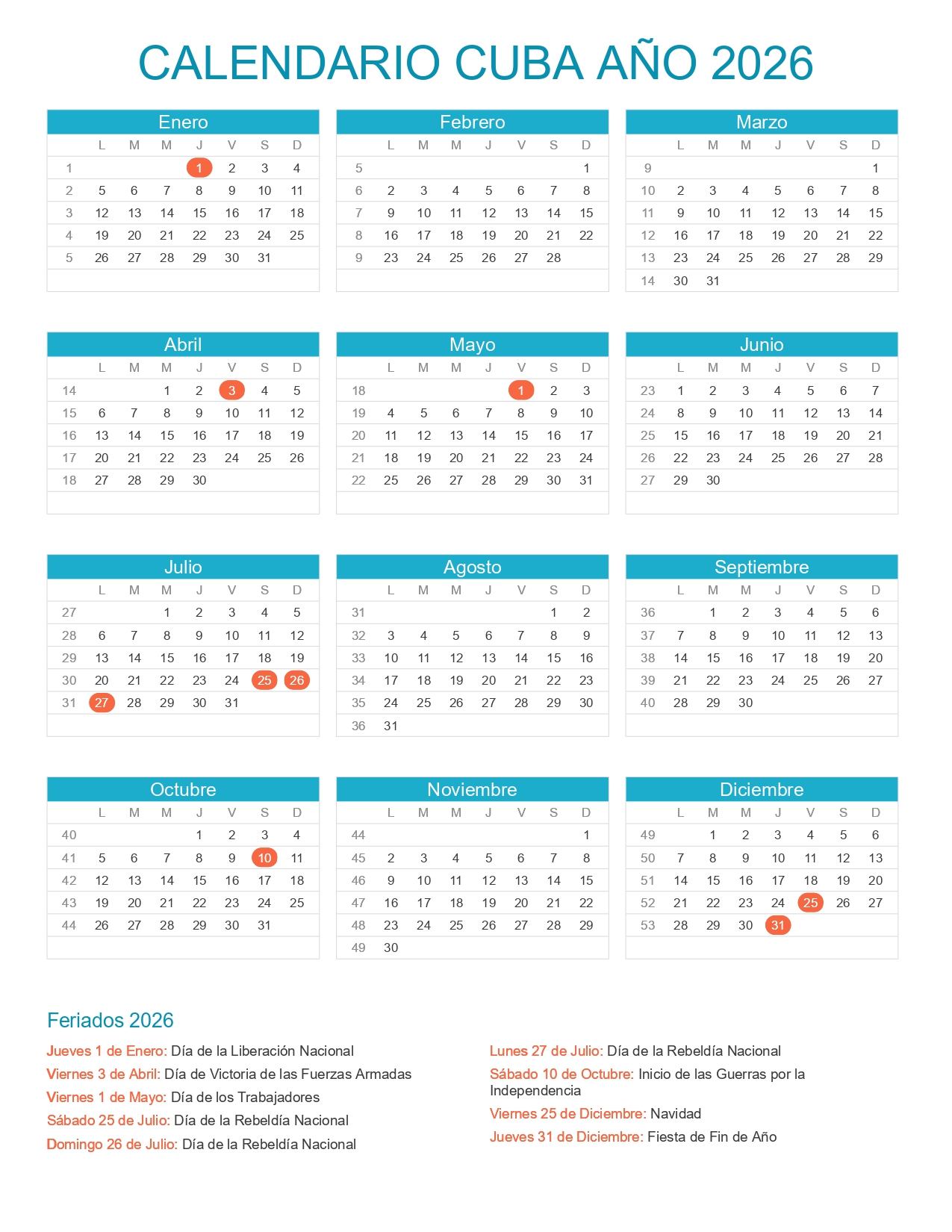 2026 Cuba Calendar With Holidays – Bild & Inspiration