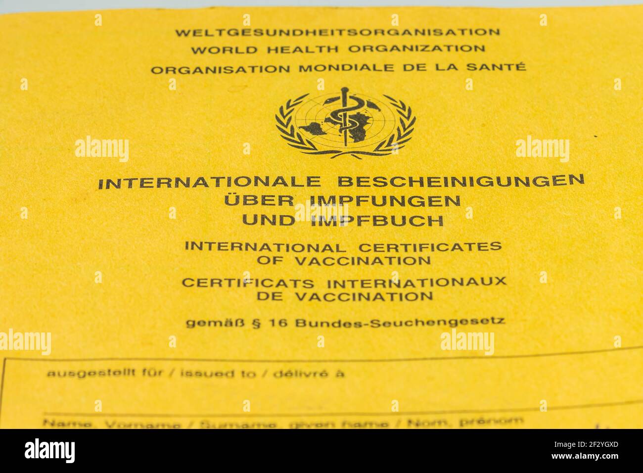 Internationale Impfkarte der Weltgesundheitsorganisation. Gelber …