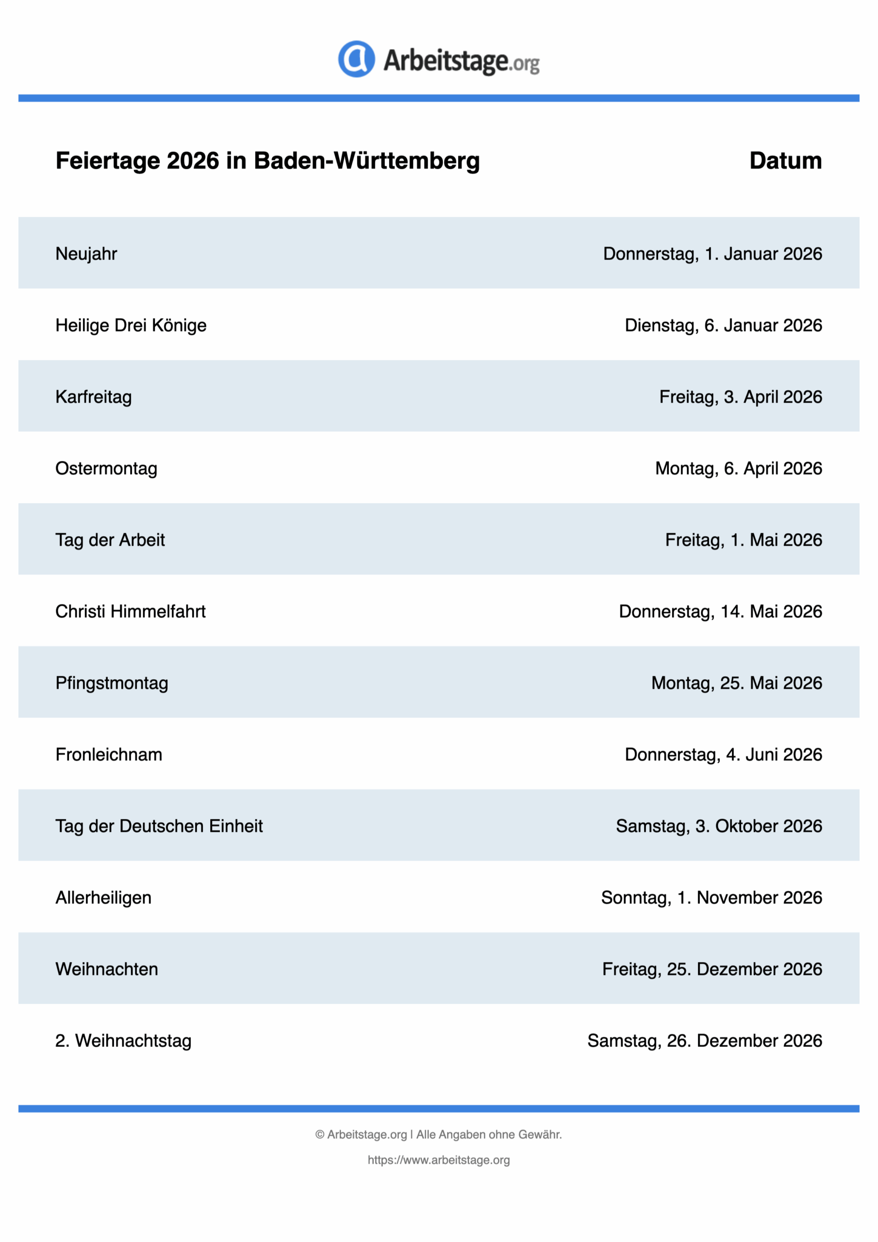 Feiertage 2026 in Baden-Württemberg • Termine & Infos, die du als Idee für Design, Präsentation oder Recherche nutzen kannst.