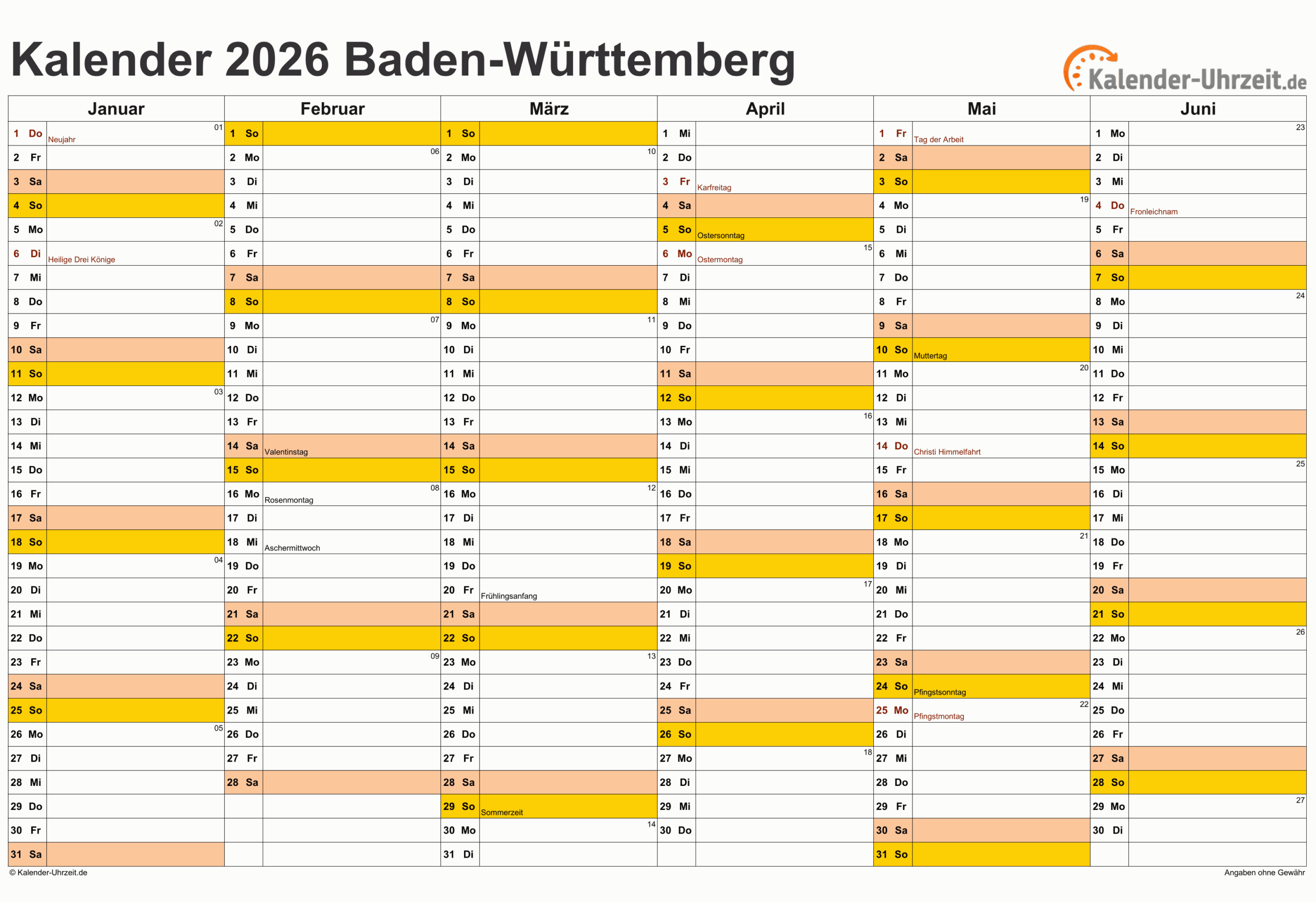 Kalender 2026 Baden-Württemberg: Excel-Vorlagen Mit Ferien – Bild & Inspiration