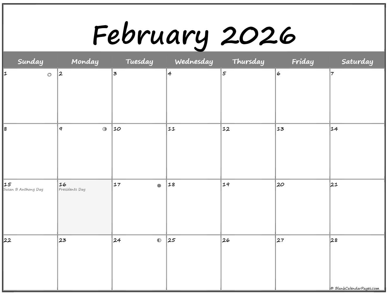 Hier siehst du eine visuelle Darstellung von Kreative Ideen zu February 2026 Lunar Calendar blankcalendarpages.com