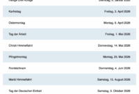 Liste der Feiertage 2026 (Deutschland) – Dream Kalender