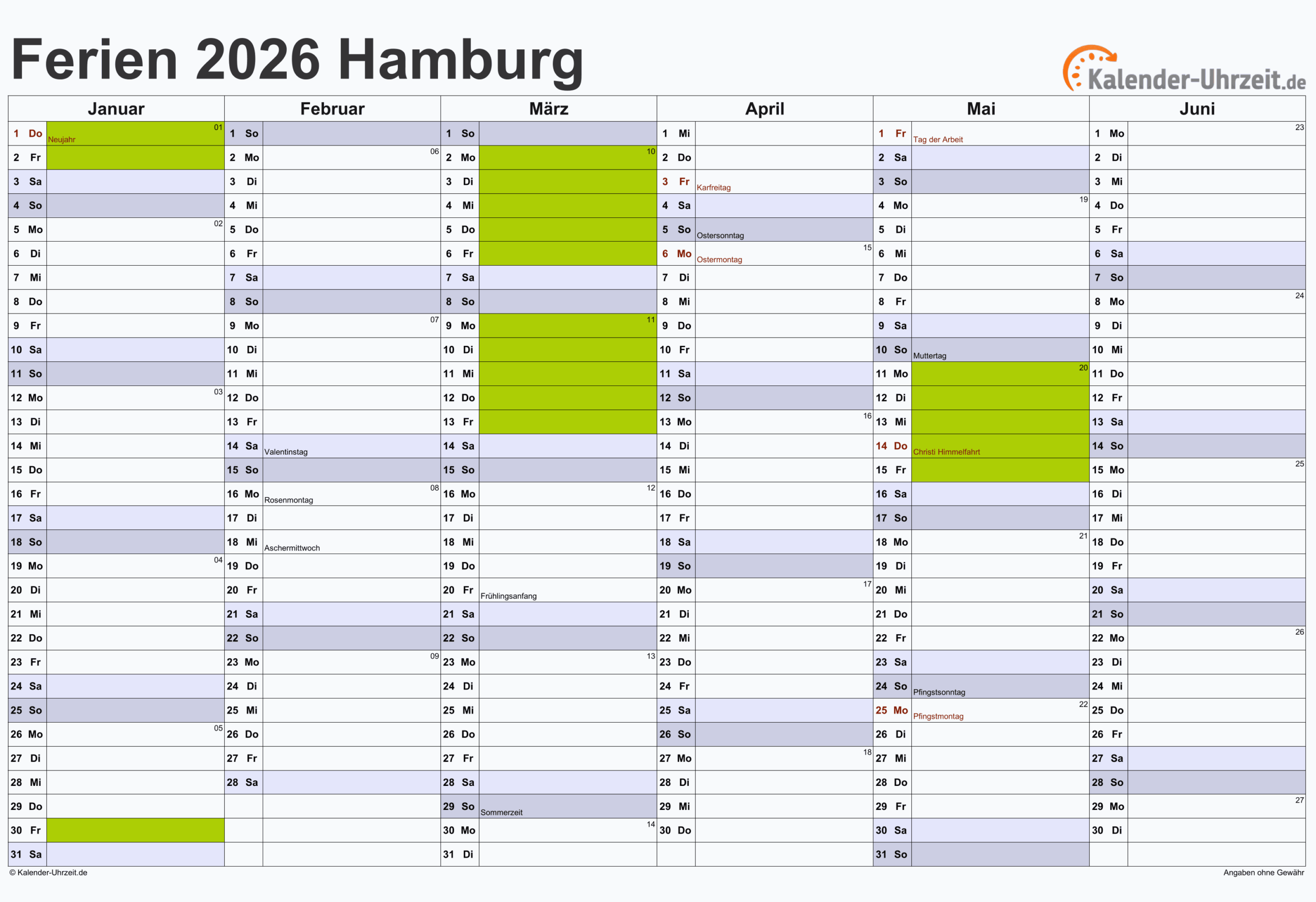 Schulferien-Kalender Hamburg 2026 Mit Feiertagen Und Ferien – Bild & Inspiration