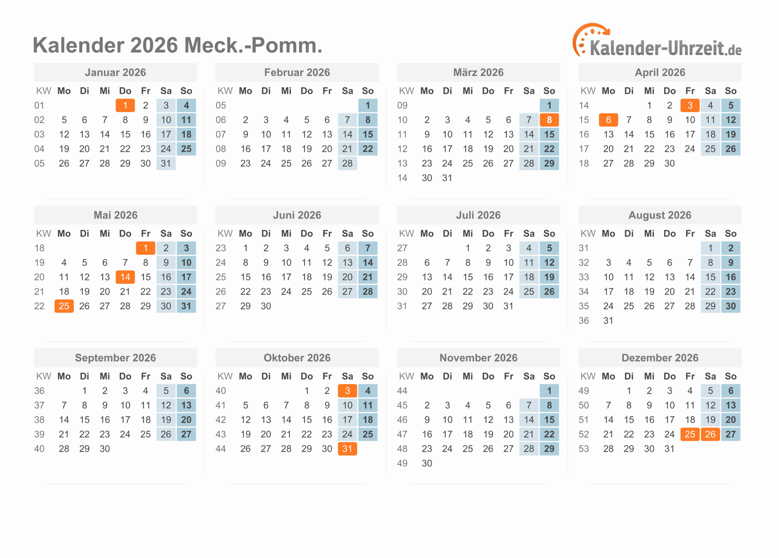 Feiertage 2026 Meck.-Pomm. + Kalender
