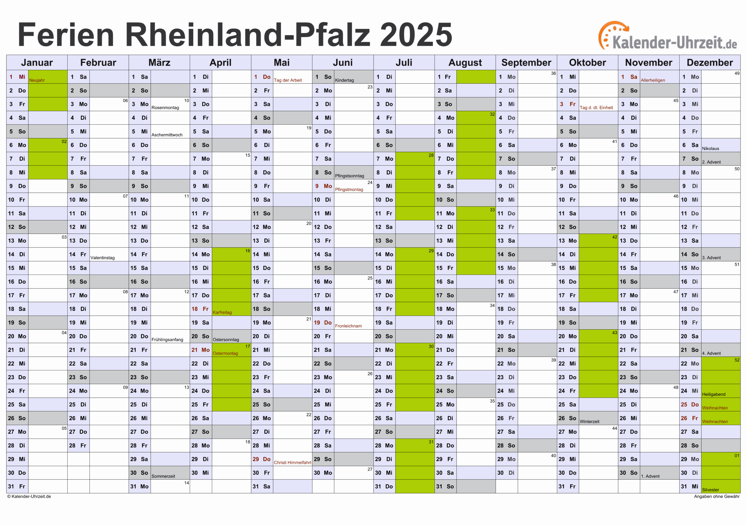 Ferien Rheinland-Pfalz 2025 – Ferienkalender Zum Ausdrucken