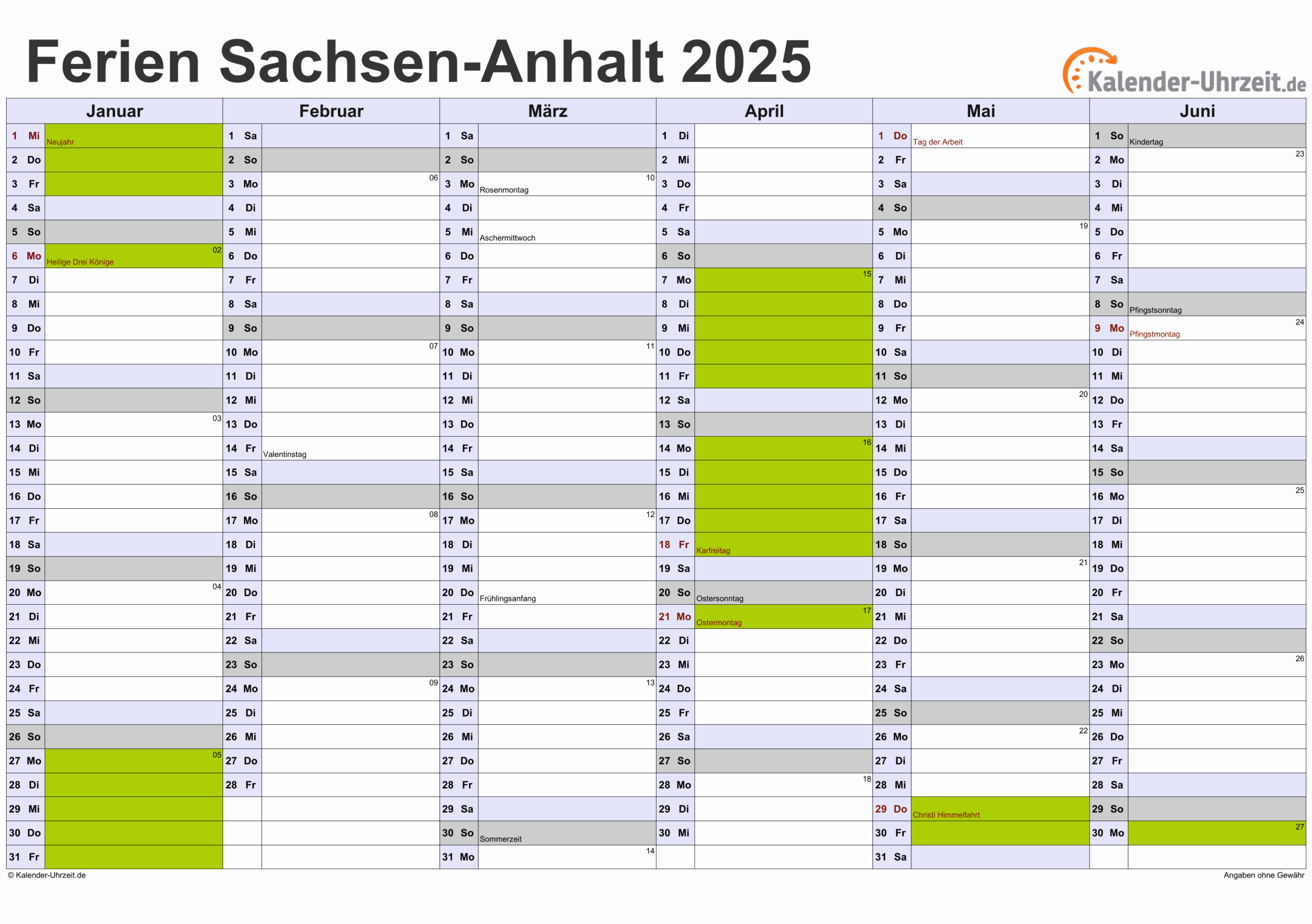 Ferien Sachsen-Anhalt 2025 – Ferienkalender Zum Ausdrucken – Bild & Inspiration