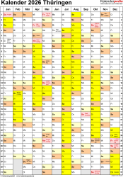 Kalender 2026 Thüringen: Ferien, Feiertage, Excel-Vorlagen