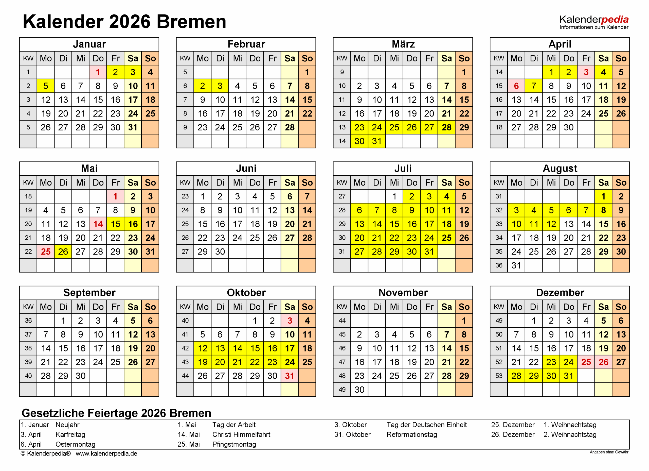 Feiertage Bremen 2026 – Kalenderpedia – Bild & Inspiration