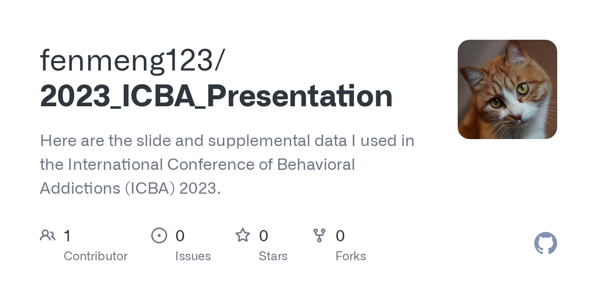 Wenn du GitHub – fenmeng123/2023_ICBA_Presentation: Here are the slide and in einer Präsentation oder im Druck nutzen möchtest, solltest du zuerst die Bildqualität und die Lizenz prüfen.