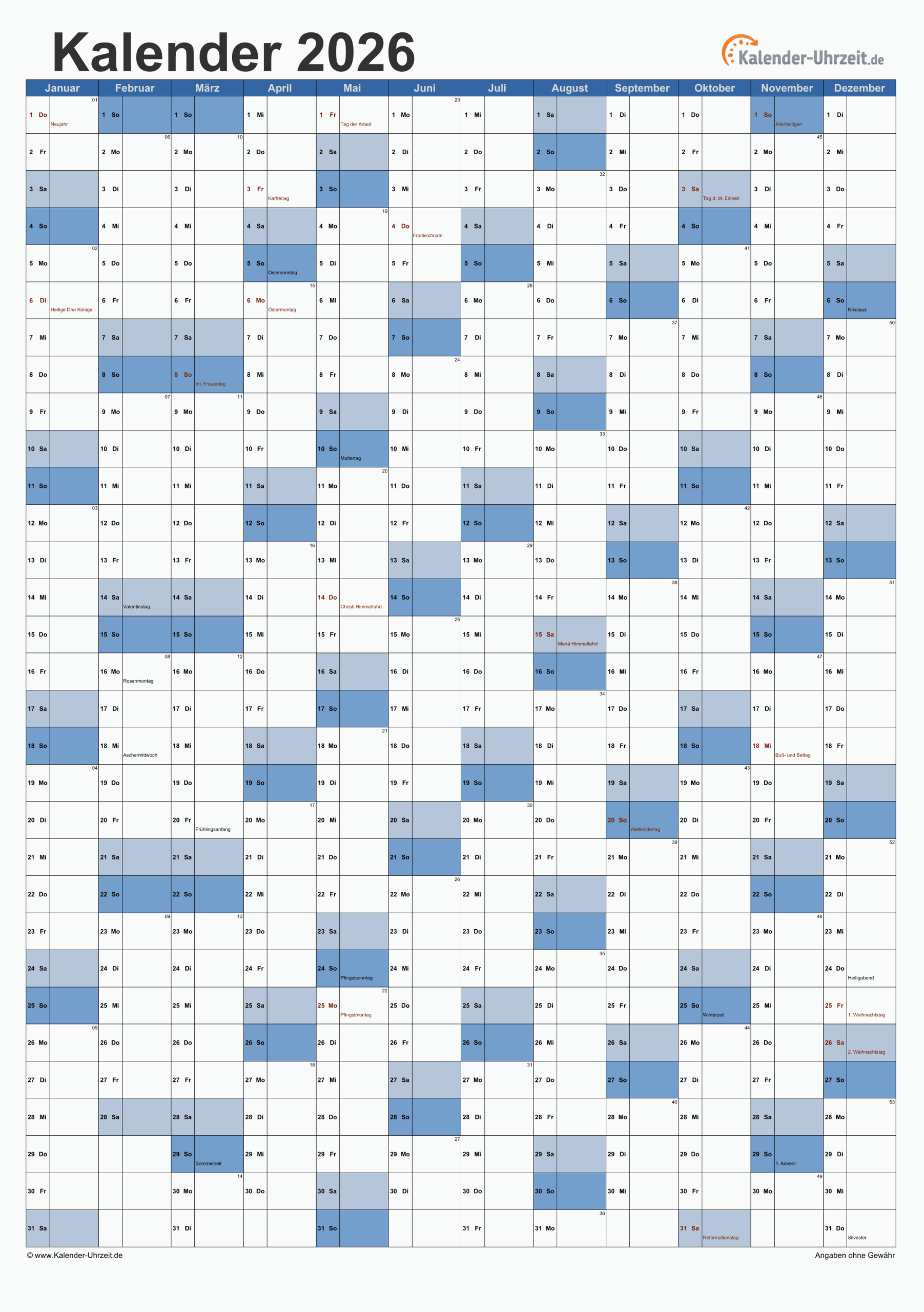 Kalender 2026 Mit Feiertagen – Bild & Inspiration