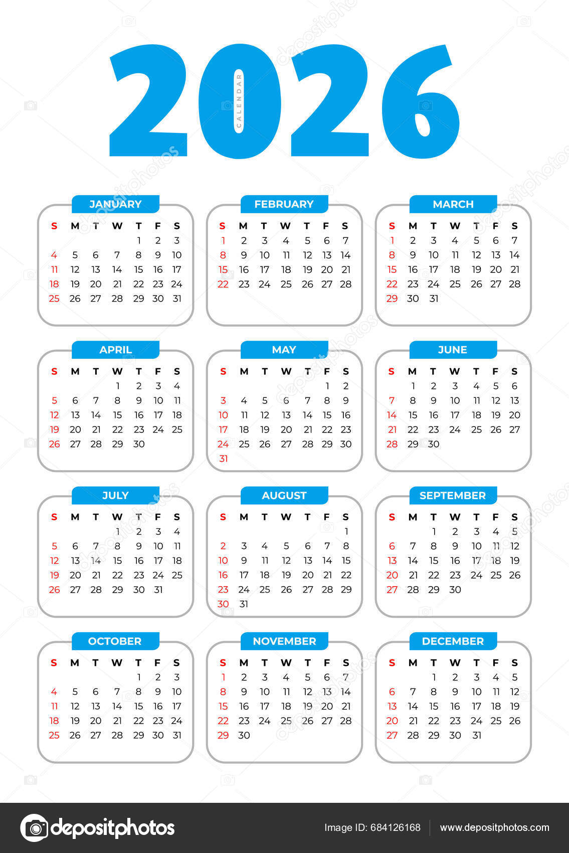 2026 Basic Calendar White Background Stock Vector by ©maulidiah 684126168
