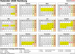 Kalender 2026 Hamburg: Ferien, Feiertage, Excel-Vorlagen