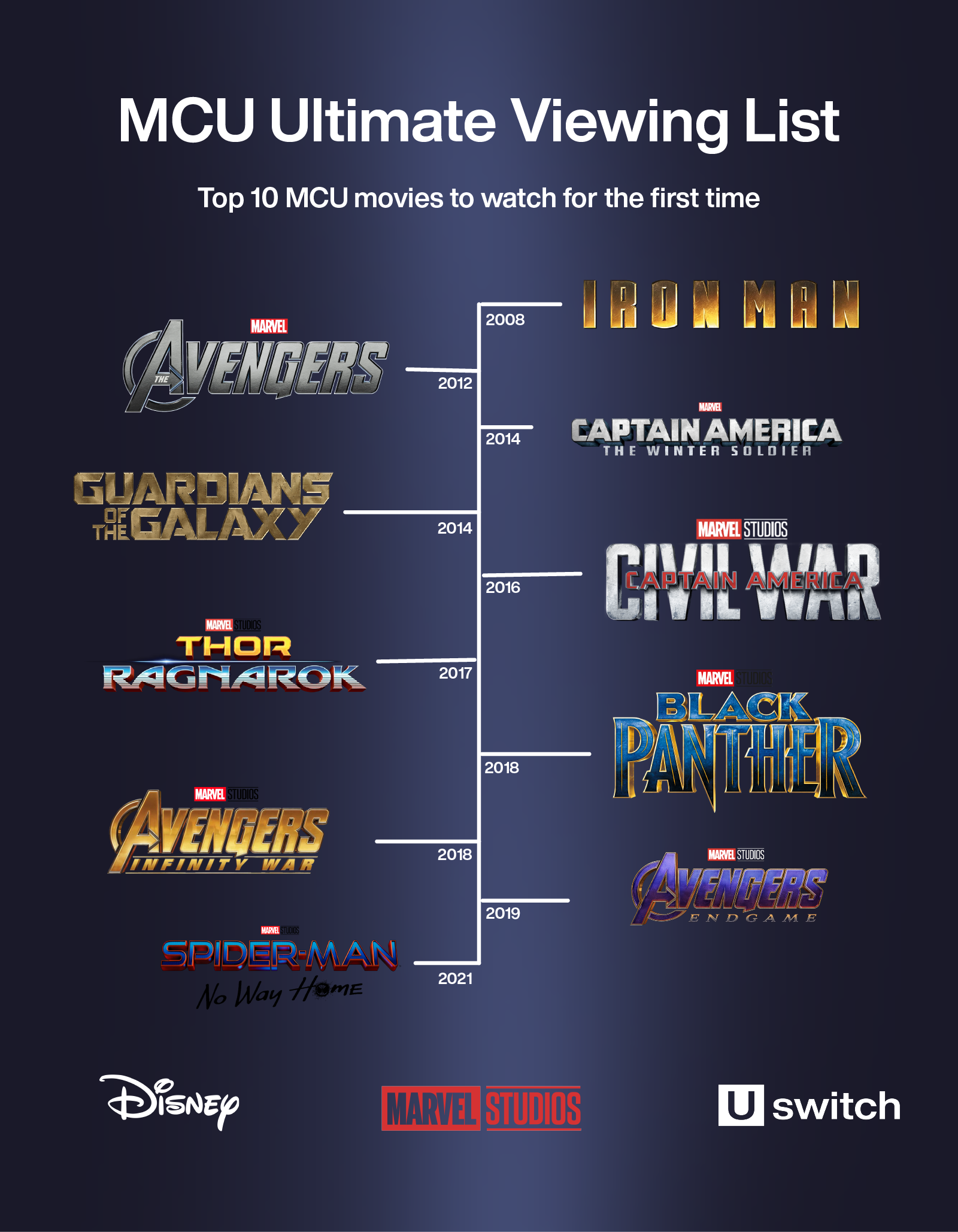 Dieses Bild zeigt ein Motiv zum Thema MCU timeline: All Marvel movies and shows in order und eignet sich