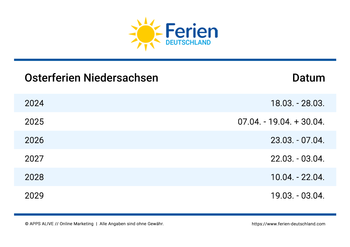 Osterferien Niedersachsen 2024, 2025, 2026, 2027, 2028, 2029: Termine …