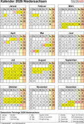 Kalender 2026 Niedersachsen: Ferien, Feiertage, Excel-Vorlagen verwendest.