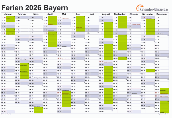 Ferien Bayern 2026 – Ferienkalender Zum Ausdrucken – Bild & Inspiration
