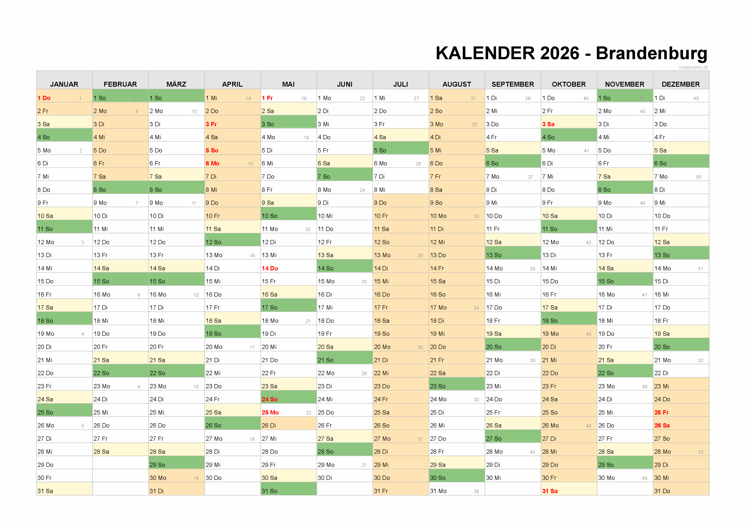 Kalender 2026 Brandenburg kostenlos: Ferien-Übersicht, Feiertage, PDF …