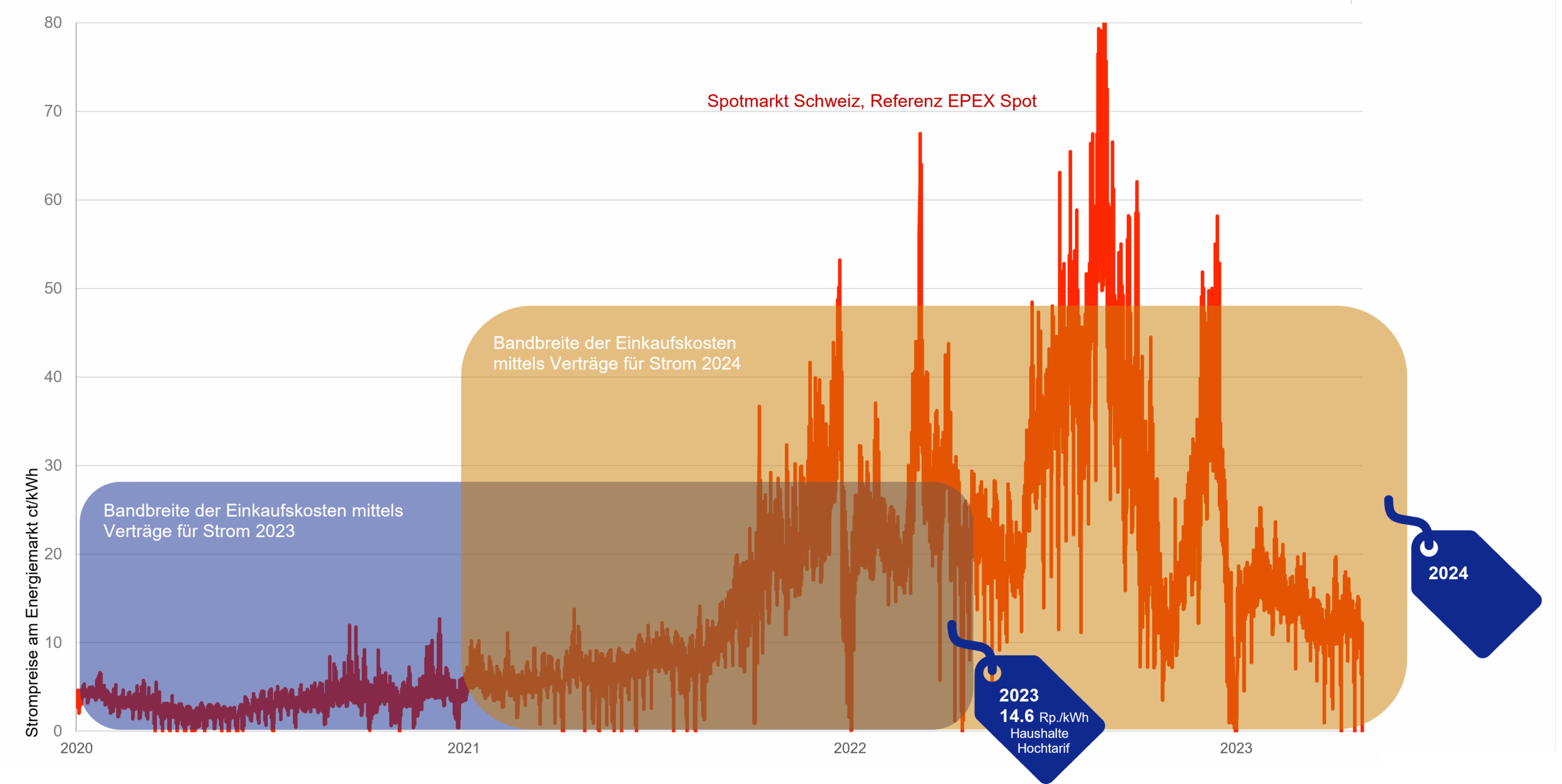 Dieses Bild zeigt ein Motiv zum Thema Strompreisentwicklung Prognose 2025, 2026, 2030/40 und eignet sich Strompreise 2024 – SWL Energie AG Motiv – Illustration & Bildideen www.swl.ch