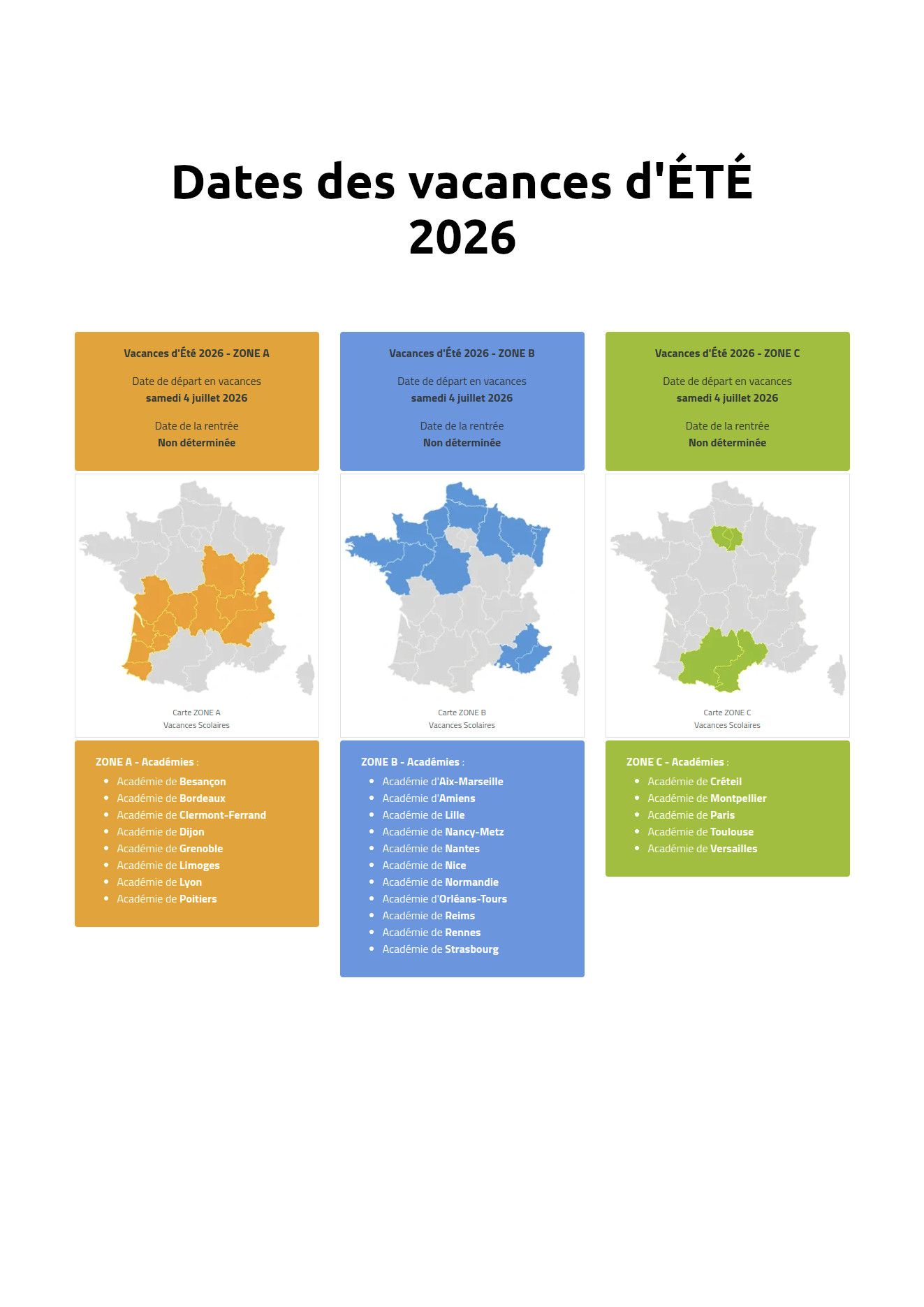 Dates des vacances d'été 2026 | Calendrier scolaire 2025-2026 | Zones …
